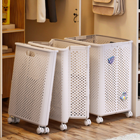 Hoge Kwaliteit Opvouwbare Plastic Wasmand Met Wielen Handvat Voor Het Reinigen Van Vuile Kleding Huishoudelijke Diversen